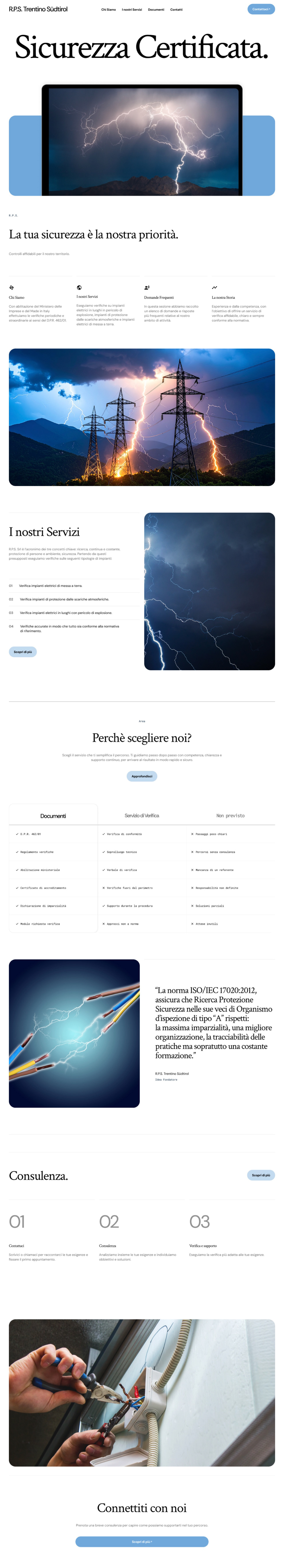 For R.P.S. Trentino Südtirol, a company specializing in grounding system inspections and electrical safety services, I led the development of the overall brand identity and corporate image. My work focused on defining a clear and consistent visual & communication strategy, including the design and structure of the company website. Alongside brand development, I coordinated a social media project aimed at strengthening the company’s digital presence and visibility. The project involved shaping a coherent image that reflects reliability, technical expertise and trust within the electrical and safety sector.